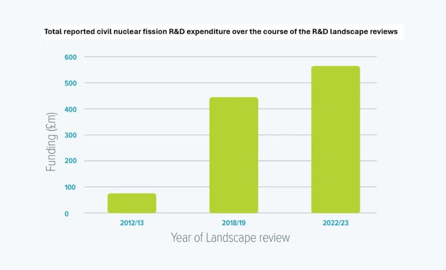 The latest landscape review was undertaken in 2024 which reviewed data from the financial year 2022/23. Any organisation, institution, company or body involved in nuclear R&D was invited to submit a response. The key findings from this landscape review are: